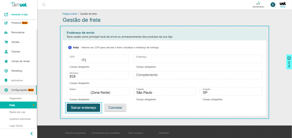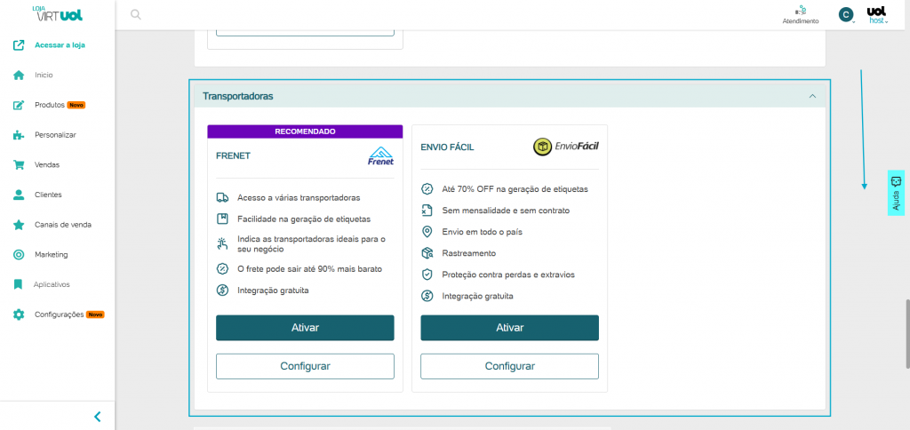 Para configurar o Frete na sua loja VirtUOL, é bem simples!