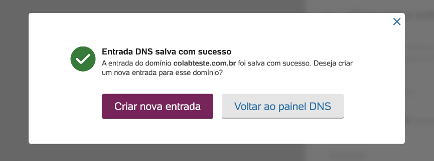 Pronto! Após salvar a entrada, será apresentada a mensagem “Entrada DNS salva com sucesso”: