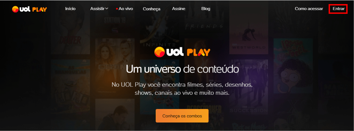 Acesse o UOL Play pelo seu navegador de internet ou baixe o aplicativo para iOS ou Android e clique em “Entrar”.